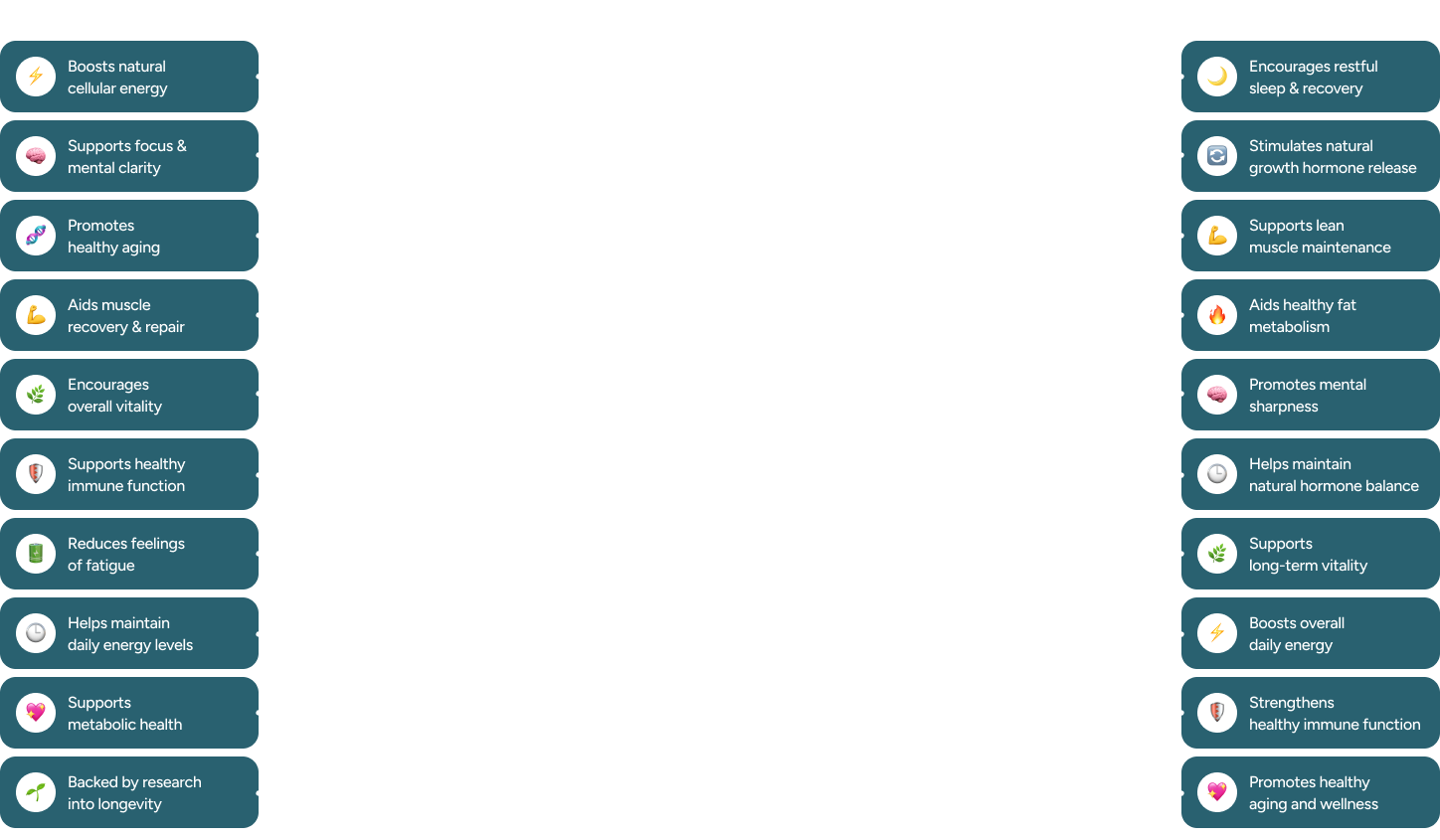 Helps boost energy, cognitive clarity, and cellular health for improved wellness.