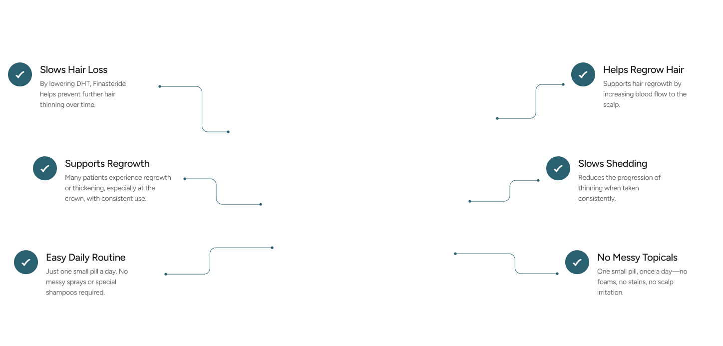 A DHT-blocking medication that helps slow or stop male pattern hair loss.